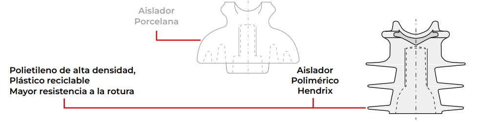 Los aisladores Hendrix están moldeados con una mezcla patentada de polietileno gris de gran densidad, resistente a la rotura, ideales para áreas que pueden sufrir vandalismo.